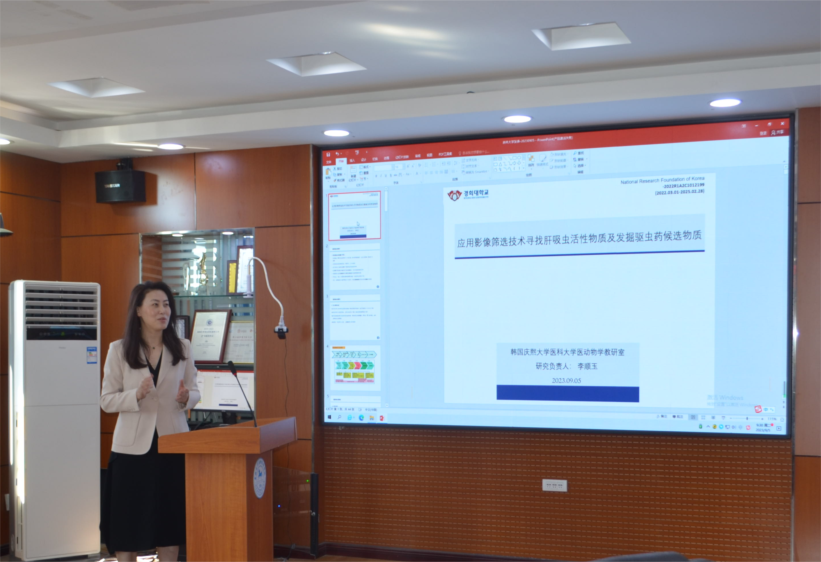 9月5日,韩国庆熙大学医公司医学动物学系李顺玉教授莅临EMC易倍进行学术交流。EMC易倍副经理李建华教授、预防兽医学系主任冯新教授、动物及人兽共患寄生虫病教研室学术带头人张西臣教授、教研室主任宫鹏涛教授、研究生科研办公室主任李赫老师等参加了本次学术交流。