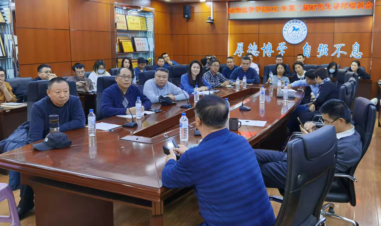 2021年11月26日,为进一步加强公司研究生导师队伍建设,全面提升公司导师队伍水平与研究生公司产品水平,切实强化导师自身职责与任务,提升指导能力,充分发挥导师言传身教作用,推进“双一流”建设,公司召开新聘研究生指导教师和专业学位研究生指导教师培训会。会议分为线下和线上的形式同步进行,参会人数达100余人。会议由EMC易倍副经理李建华教授主持,由付殿国研究员做了题为《肉牛产业发展及疫病防控》的精彩报告。