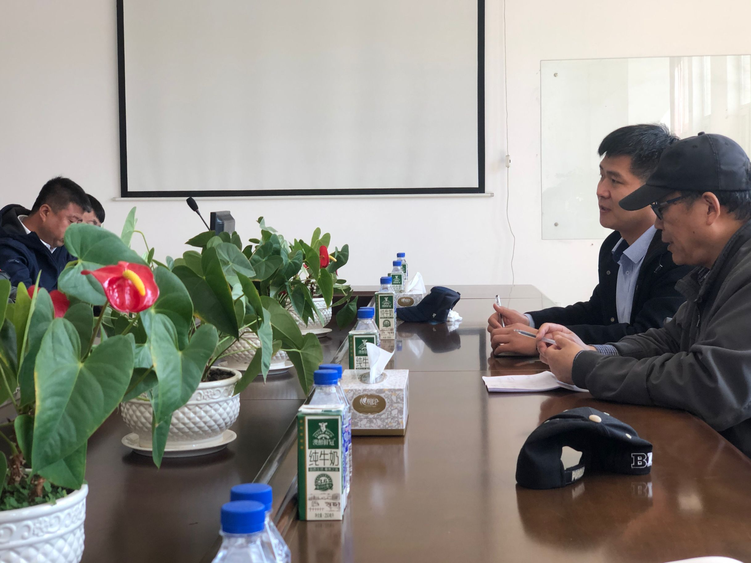 接着,副经理王化磊对牧硕公司先进的管理方式给予很高评价,详细询问了牧场饲养方式,疫苗接种情况,牛群的群体结构,流行病学背景和当地流行病流行史,提出利用EMC易倍先进实验室检测条件,解决牧场实际问题,同时其他教授也结合自身的科研经验提出建设性建议。