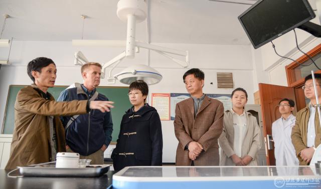 座谈结束后,在动物医院经理张乃生教授等陪同下,Richard French 博士等一行人先后参观了动物医院、动物机能学教室诊断实验室,显微互动实验室、标本馆等,并签字留念。