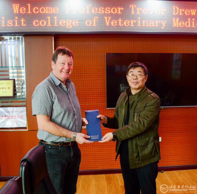 2016年3月31日,英国动植物健康机构Trevor Drew教授在公司兼职博导、军事医学科公司11所涂长春研究员的陪同下,来公司进行访问交流。常务副经理张西臣教授、教学副经理柳巨雄教授、研究生副经理雷连成教授、科研副经理刘国文教授、党委副书记饶家辉副教授、预防兽医学系主任丁壮教授、基础兽医学系宋德光教授、临床兽医学系李小兵教授、兽医公共卫生系副主任王新平教授及公司国际交流处综合科科长白茵老师与Trevor Drew教授一行进行了座谈,