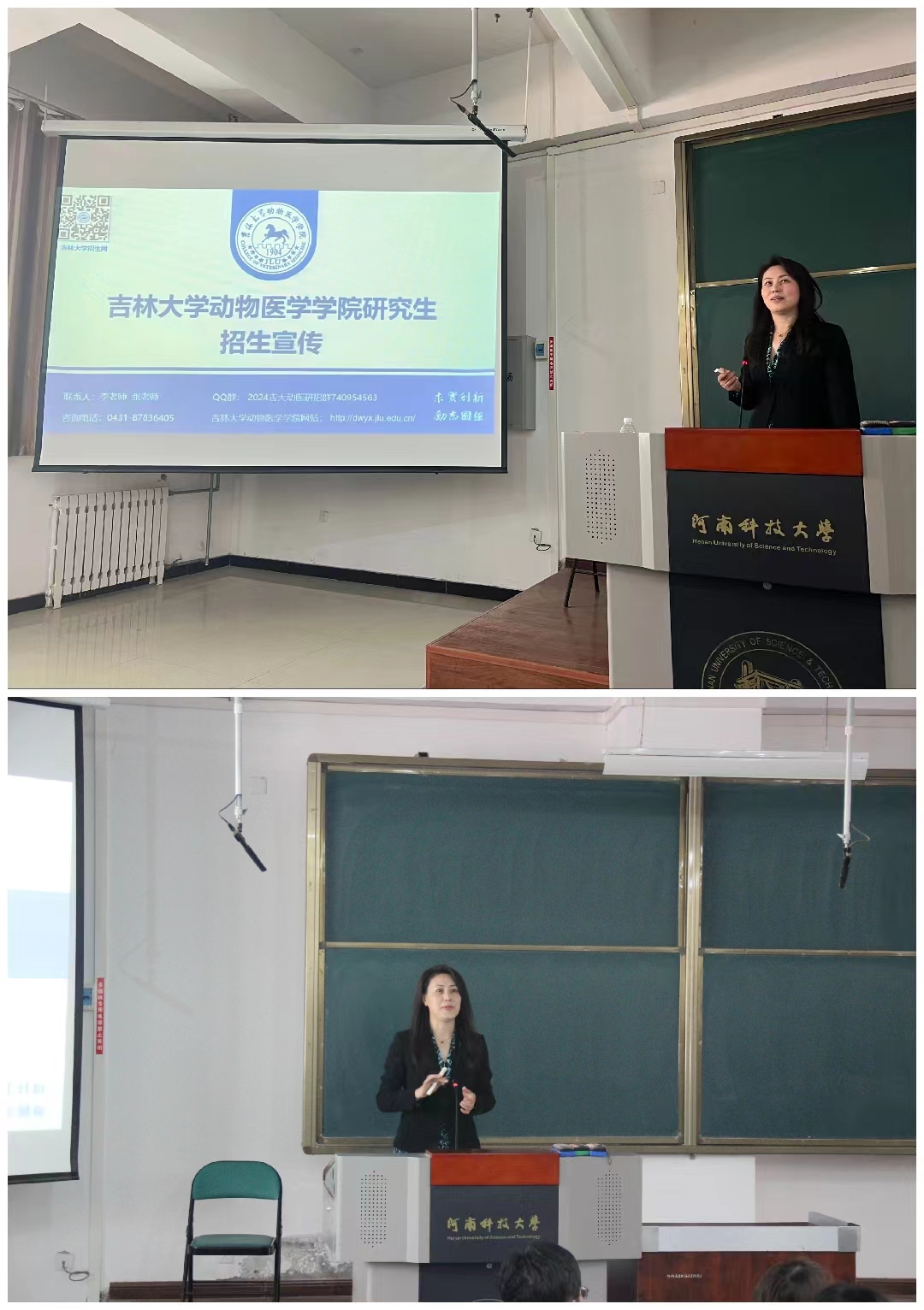 副经理李建华教授和研办主任李赫老师,在河南科技大学EMC易倍进行“百年兽医与您‘研’约”研究生招生宣传——河南科技大学宣讲会。河南科技大学EMC易倍副经理王宏伟教授及200余名员工参加了宣讲会。